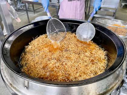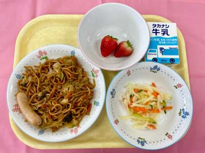 今日は、給食委員会で全校児童を対象に行った好きな給食アンケートで、たくさんの児童が好きなメニューに選んでくれたソース焼きそばを作りました。給食の焼きそばは一度麺を揚げて作るので、家庭の物とはひと味違います。2月と3月は人気メニューをたくさん取り入れていくので楽しみにしていてください。