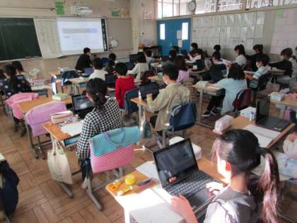 電気をを通す物を予想し、実験で確かめる学習にクロームブックを用いていました。