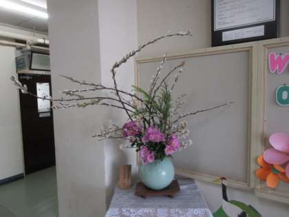 地域の方が、職員玄関のお花を2月バージョンにリニューアルしてくださいました。ご来校の際にはぜひご覧ください。