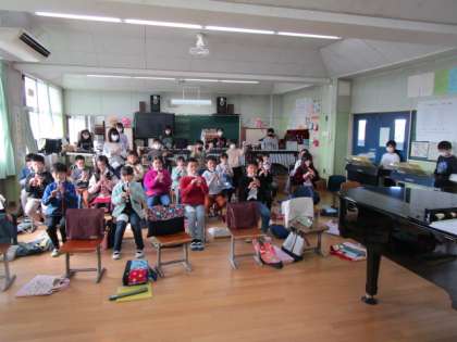 1年間の学習の成果として、合奏や合唱を先生方主事さん方に発表してくれました。真剣な態度がとても立派でした。