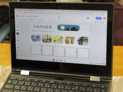 1年生ではジャムボードを用いて「たぬきの糸車」の学習をしていました。