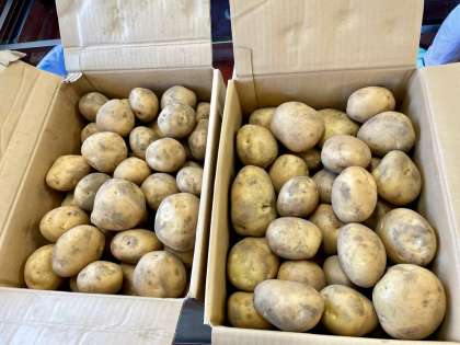 ふたつめは、まち☆ベジのじゃがいもについて。農家の佐藤さんが、秋に植えて育ててくださったじゃがいもです。年末に畑を見学させていただいたのですが、そのときは地上に出ている葉しか見ることが出来なかった物が、しっとりとして味の濃い、大きくて立派なじゃがいもとなって届きました。