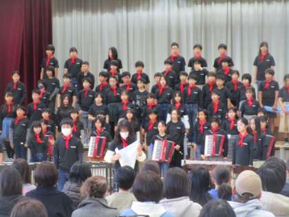 6年生が卒業コンサートを保護者向けに行い、練習を積み重ねてきた合唱と合奏を披露しました。