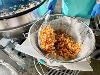パリパリサラダは、シューマイの皮を短冊に切って揚げたものを野菜サラダに混ぜて食べます。やはりパリパリの威力はすごいもので、いつもは野菜料理をおかわりしない児童までおかわりをしていたり、いつもは野菜を減らす児童も、このサラダであれば減らさずに食べられたりと、改めてパリパリサラダの人気を実感した日でした。
