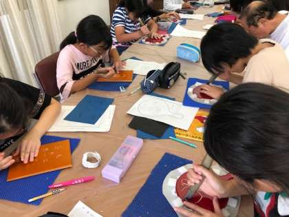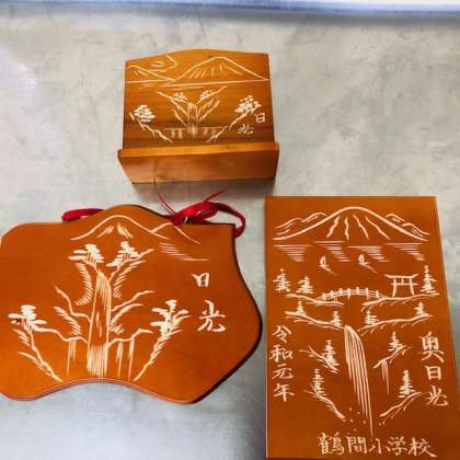 引っかき刀を使って、手鏡やアルバム等の木の板に