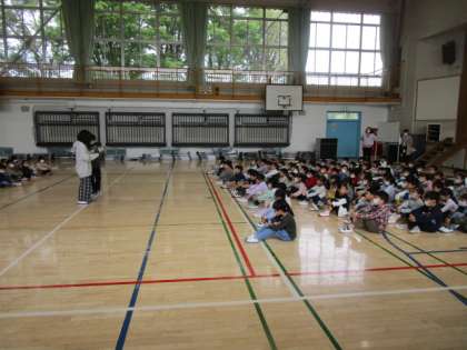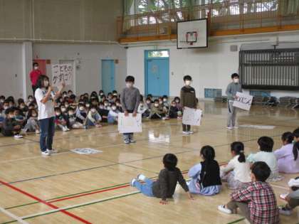 昨年度の代表委員会の児童が、司会進行を務め、クイズ、プレゼントなどで1年生もとても喜んでいました。