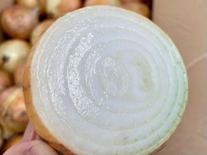 今日の玉ねぎは、いつもまち☆ベジの野菜を納品してくださる農家の佐藤さんが育ててくださったものです。佐藤さんの玉ねぎはとてもみずみずしく、皮を剥いていても玉ねぎの水分が滴ってくるほどです。その玉ねぎを、今日は肉じゃがに入れました。肉厚で食感が良く、おいしい玉ねぎでした。