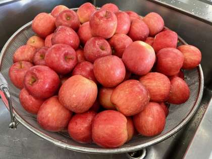 秋から冬に旬をむかえる果物のひとつに「りんご」があります。先月の「つがる」に引き続き、今日は青森県産の「早生ふじ」を使用しました。