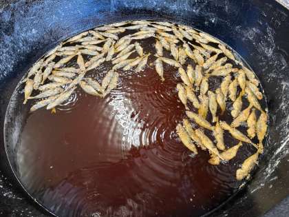 そして、今日は久しぶりに小あじをから揚げにしました。低温でじっくりと、カリカリになるまで揚げるので、頭から尻尾まで骨も気にならずに食べられます。特に頭の部分のサクサクが最高なのですが、見た目が苦手で食べられないという児童もいます。そこで今日の給食時間は、低学年を中心に小あじをオススメしに行って来ました。苦味や臭みも無いので、食べてみたら「おいしい!」と言ってくれる子がたくさんいました。
