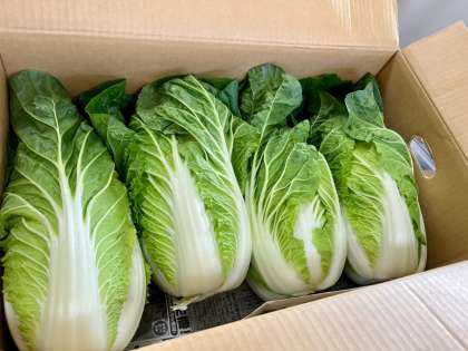 今日届けていただいた町田産の白菜も、暑さの影響で例年より巻きが良くないそうで、11月の町田産白菜の使用は難しそうです。