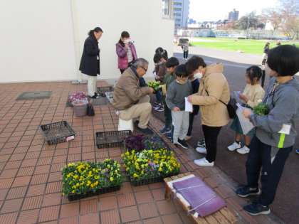 これは「パンジーです」等と、誇らしげに植えた苗を見せてくれました。