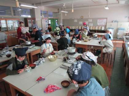 5年生は、調理実習でご飯とみそ汁を調理し、味わっていました。ご飯は少々焦げ気味でしたが、それでも、自分たちで作ったものだからかよく食べていました。
