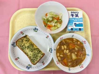 今日は久しぶりにガーリックトーストを作りました。ここ数年は甘いトーストを作ることが多かったので、珍しいガーリックトーストの登場に、児童も楽しみにしてくれていました。低学年はあまり食べ慣れない児童もいたようですが、中学年・高学年ではほとんど残りが無く好評でした。