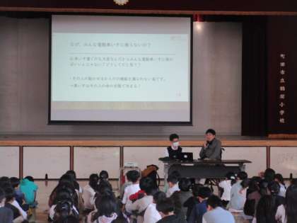 4年生は、車いす利用者の方の講話を聞く学習を行いました。