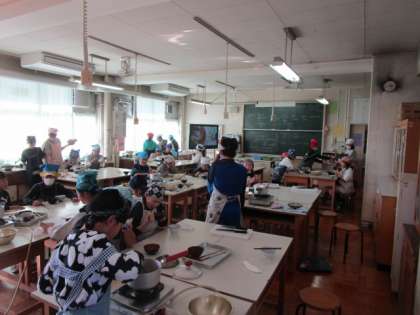 今日も、5年生(先日とは違うクラスです)は家庭科の調理実習でご飯とみそ汁を作っていました。「おいしすぎる」と感動しながら自分たちで作った食事を味わっていました。