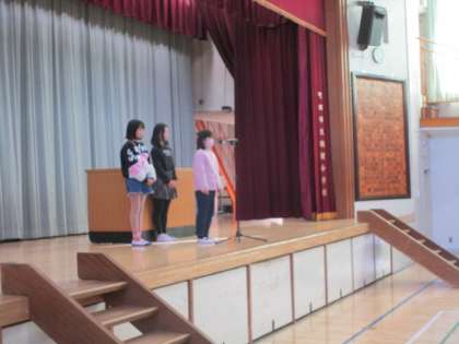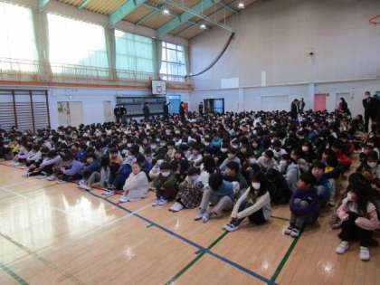 始業式を行い、5年生の代表児童3名が3学期の目標を堂々と発表しました。