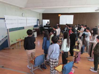 1月10日 公開日 2024/01/10 更新日 2024/01/10 校長室より 3学期が始まって2日目 早速授業が本格的に始まりました。 写真は4年生の音楽の様子です。曲想に合わせた歌い方の工夫を考えながら歌う学習に熱心に取り組んでいました。 校長室より 新着情報