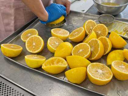 フルーツレモンは、ふつうのレモンよりもサイズが大きめで、酸味がまろやか、そして香りが良いのが特徴です。輸入物のレモンと違い、皮に防腐剤が使われていないとのことだったので、皮の表面を少しすりおろして加えてみました。果汁を絞っているときは、フルーティーな良い香りがして、とても爽やかでした。