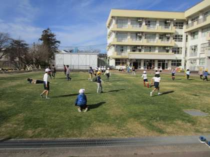 他の学年の児童は、芝生の広場などで元気よく過ごしていました。