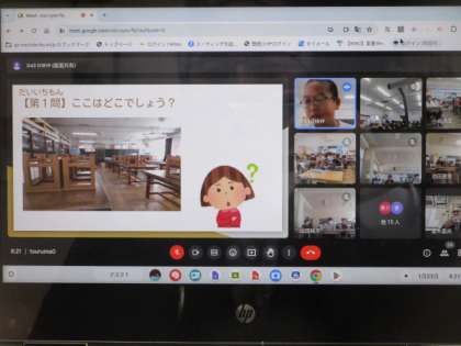 集会委員会の児童が、クイズを出し全校児童を楽しませました。
