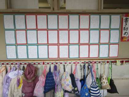 今日から書き初め展を行いました。各教室前に掲示してありますので、ぜひ、ご覧ください。