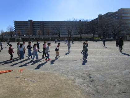 朝は寒かったのですが、日中は穏やかな日差しのお陰で過ごしやすくなりました。昼休みには、2年生が大勢で長縄に挑戦していました。「体育でやったら楽しかったから」と言っていました。