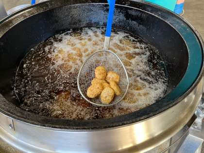 子供たちからは、「今日は何コロッケ?かにクリームコロッケ?」「コロッケの中身は何?グラタン?」など、コロッケの中身に関する質問を多くもらいました。印象としてはクリームコロッケを想像する子が多く、なるほど、現代はコロッケ=じゃがいもではなく、コロッケ=クリームなのだな、と密かにジェネレーションギャップを感じたのでした。