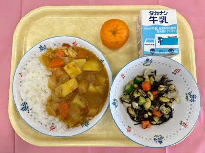 今日は給食の歴史を振り返る献立の第三弾でした。給食の定番カレーライスが日本の学校給食に登場したのは戦後のこと。ただ、昭和20年代から40年代はパンを主食とした給食が多かったため、カレーライスが本格的に全国の給食で取り入れられたのは米飯給食が始まった昭和50年代からです。昭和の後半から平成、そして令和と、どの時代も人気のカレーライスは、もちろん鶴間小でも大人気。今日もカレーの登場に喜び児童の姿をたくさん見ることができました。