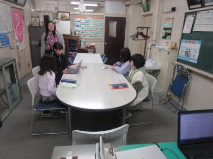 右は、3年生が国語の学習で校長室にインタビューしに来た様子です。緊張しながら、質問し、一生懸命メモを取っていました。