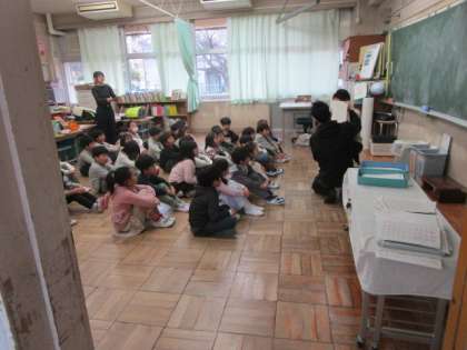 左は、読み聞かせの様子です。各クラスに、保護者の皆様がお越しいただき、読み聞かせをしてくださいました。