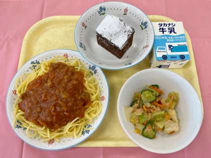 今日はブラウニーを焼きました。ケーキ系の調理がある日は、うまく焼けるか、きちんと膨らむか、いつもドキドキしているのですが、今回も無事、調理員さんたちのおかげで上手にできました。
