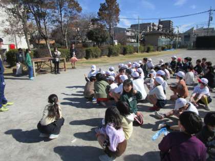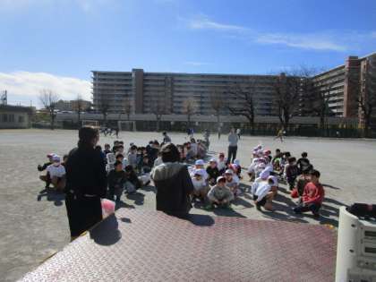 良く晴れた青空の元、中休みには、体育委員会の企画で2・4・6年生が合同でしっぽとりを楽しみました。