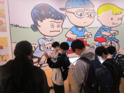 5年生はそんななか、寒さに耐えながらスヌーピーミュージアムまで歩き、英語の体験学習を行いました。