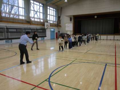 昼休みには、今日も大谷選手のグローブを使って3年生がキャッチボール体験をしました。