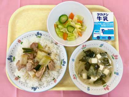 鶴間小の焼きとり丼は、とり肉に下味をつけてオーブンで焼き、とり肉から出たエキスをまとわせて長ねぎを焼きます。焼いたねぎは甘くジューシーで、「このねぎ甘い!」と言って、普段は苦手なねぎを食べてくれた児童もいました。