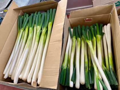 今日は、農家の佐藤さんがたくさんの長ねぎを納品してくださいました。町田で育ったまち☆ベジの、新鮮な長ねぎです。