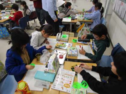 右の写真は、3年生の理科の学習の様子です。磁石の実験をしているところです。