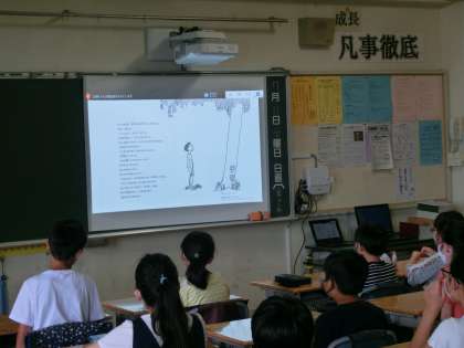 終業式では「『大きな木』 シェル・シルヴァスタイン作 村上春樹訳 あすなろ書房」を読み聞かせしました。涼しい部屋でゆっくりと本に親しんでほしいという願いからです。
