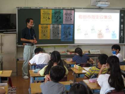 4年生は、先日、町田市3R推進課の方々を招き、ごみ収集車の見学や、3Rの取り組みについて学習しました。社会の授業でごみ問題について学んでいましたが、今回の出前授業を通して、より確かな知識を得ることができました。今回の出前授業を通して学んだことを、今後の生活に生かしていけたらと思います。