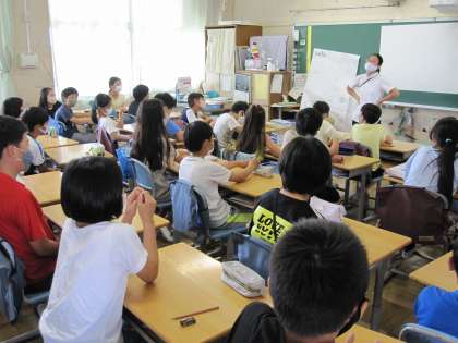 教室では夏休みの出来事を発表し合って、楽しい思い出を振り返っていました。