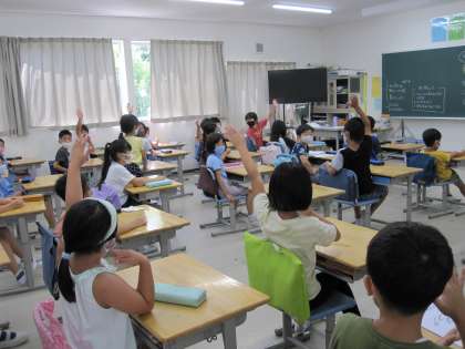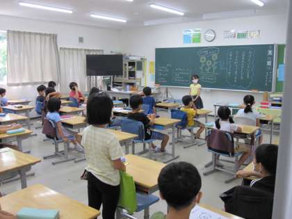 教室では夏休みの出来事を発表し合って、楽しい思い出を振り返っていました。