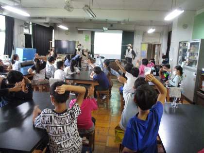 10月1日(木)に、4年生では水道キャラバンを実施しました。東京都水道局の職員の方に来校して頂き、浄水の仕組みや、東京都における水の供給の仕方などについて詳しく話をして頂きました。動画やクイズなども含めながら、説明して頂いた内容に、子供たちも興味津々でした。今回の授業を通して学んだことをこれからの生活に生かしていけたらと思います。