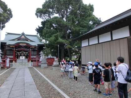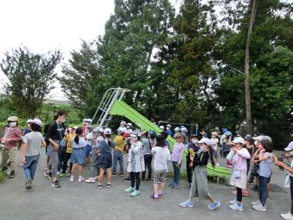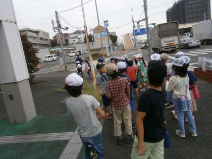 10月5日(月)の3・4校時に、生活科の学習で緑コースへ地域探検に出かけました。子供たちは、交通量が多い国道16号線を歩いたり、熊野神社やくつろぎ公園を見学したりと、普段から馴染み深い場所で次々と新たな発見をしていました。