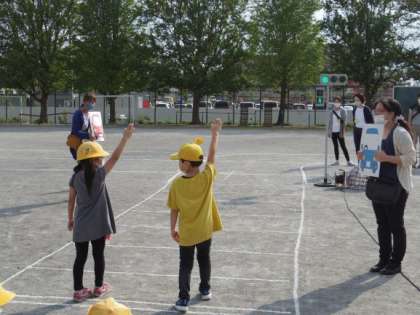 10月13日(火)の5時間目に横断歩行訓練がありました。アマビエの合言葉で交通安全について学びました。