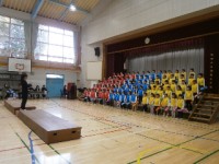 今朝も代表リレーの選手が練習に励んでいます。今日は、チームに分かれてバトンの受け渡しの練習です。できる限りスピードを落とさずに、次の走者にバトンをつなげるかが勝負のポイントになります。どのチームも真剣に取り組んでいました。