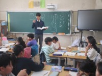 続いて、鶴間小にまつわるクイズが出されました。鶴間小のキャラクターの名前や鶴間小...