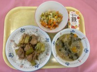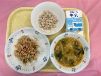 ~今日の献立~牛乳ごはん豆腐ときのこのオイスターソース煮中華風サラダ梨(あきづき...