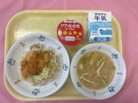 ~今日の献立~牛乳ソースチキンカツ丼油揚げのみそ汁元気ヨーグルト