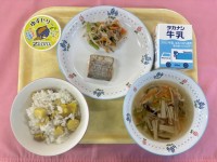 ~今日の献立~牛乳くりごはん太刀魚の塩焼きおかか和え沢煮椀町田のゆずゼリー