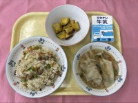 ~今日の献立~牛乳焼き豚チャーハンキャラメルポテトワンタンスープ
